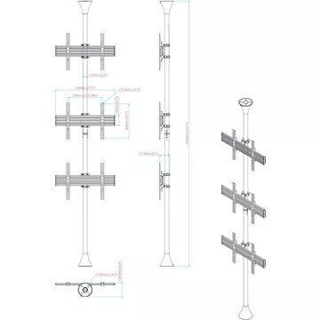Support sol-plafond pour 3 écrans TV 32″ – 75″.