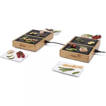Pour un dîner convivial et adapté aux goûts de toute la famille, optez pour la plancha Princess Dinner4All Pure pour 4 personnes. Elle est équipée de 4 plaques de cuisson individuelles de 20,5 x 14 cm chacune, ce qui est parfait si vos invités souffrent d’allergies ou ont un régime alimentaire spécial,Ajoutez-y jusqu’à 2 bases supplémentaires (non incluses) par le biais d’un câble de raccordement et réunissez jusqu’à 8 personnes autour de la table. Cette plancha est donc idéale pour toutes les occasions : dîners en amoureux, en famille ou entre amis,La plancha Dinner4all Pure comprend 4 plaques de cuisson en fonte d’aluminium et 4 assiettes en céramique pouvent être intégrées à la base. Comme elles ne chauffent pas, elles sont idéales pour servir des sauces ou des crudités…Les 2 couches de revêtement anti-adhésif des plaques de cuisson rendent l’utilisation de matières grasses superflues. Toutes les plaques passent au lave-vaisselle. 4 spatules en bois sont incluses pour éviter de rayer le revêtement des plaques de cuisson,Connectez jusqu’à 8 ensembles Dinner4two différents pour recevoir un grand groupe de personnes