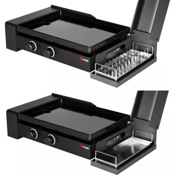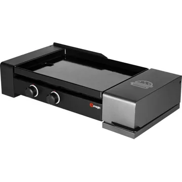Régalez vos invités en cuisinant vos plats avec cette plancha au gaz Somagic spécial burger. Elle permet de préparer de succulents burgers dans le jardin ou dans le salon tout en restant près de vos convives. La plancha est une excellente alternative au barbecue classique. Ce modèle possède un récupérateur de graisse sous la plaque de cuisson en fonte émaillée. Sur le côté, vous trouvez un casier chauffe-pain avec une grille porte-tranches qui maintient vos pains bun’s au chaud pendant la préparation de vos légumes et viandes. Elle est simple à allumer grâce à l’allumage indépendant piézoélectrique. Accueillez jusqu’à 10 couverts avec cette plancha au gaz Somagic spécial burger.