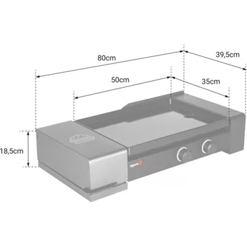 – Plancha : L 80 × l 39,5 × H 18,5cm
