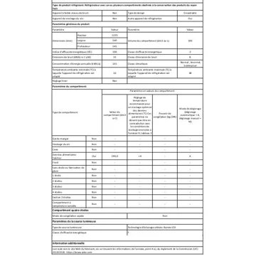 - Volume réfrigérateur : 199,0 L