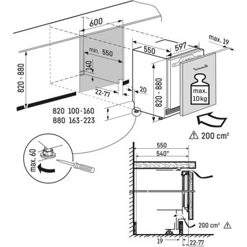 • Dimensions d’encastrement l x h x p : 60 x 82 x 55 cm