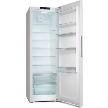 Le réfrigérateur MIELE K 4373 D D ws, avec sa silhouette élancée de 185 cm de hauteur et son coloris blanc brillant, s’intègre parfaitement dans toute cuisine moderne. Doté de poignées intégrées SideOpen et d’un bandeau de commande SensorTouch, ce modèle allie esthétique et fonctionnalité. Avec un volume généreux de 399 L, il répond aux besoins des familles nombreuses ou des amateurs de cuisine ayant besoin d’un espace de conservation important. Les 7 tablettes en verre, 2 compartiments DailyFresh et les multiples balconnets de contreporte, dont certains lavables au lave-vaisselle ComfortClean, offrent une organisation interne flexible et hygiénique. De plus, le support pour 12 oeufs et l’éclairage LED viennent parfaire l’intérieur de ce réfrigérateur tout-utile.