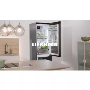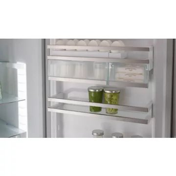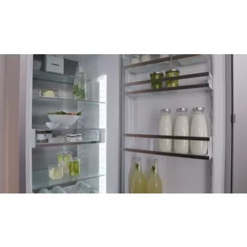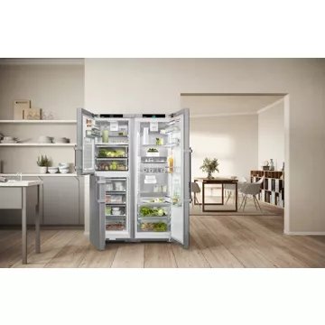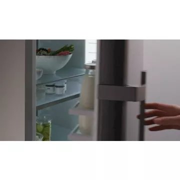 confèrent à ce réfrigérateur un aspect élégant et facile à entretenir. Avec ses dimensions de 185,5 cm de hauteur, 59,7 cm de largeur et 67,5 cm de profondeur, il s’intègre harmonieusement dans l’espace de vie tout en offrant une capacité de rangement généreuse et modulable grâce aux VarioBox et aux clayettes modulables.