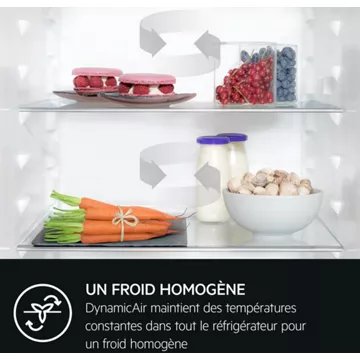 - Froid du réfrigérateur : le froid brassé permet de répartir le froid de manière homogène avec une humidité idéale pour les produits frais