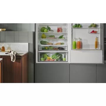 Le réfrigérateur combiné encastrable Electrolux ENG7TD18S Série 700, doté de la technologie GreenZone, est un allié de choix pour une alimentation saine. Ce tiroir hermétique unique régule l’humidité, garantissant ainsi la préservation des vitamines et nutriments des fruits et légumes jusqu’à 95% après 11 jours. Avec sa capacité de 256 litres, dont 194 litres dédiés au réfrigérateur et 62 litres au congélateur, ce modèle s’adapte parfaitement aux niches d’encastrement de 1780 mm. L’éclairage intérieur, les compartiments dédiés et les balconnets métalliques ajoutent à la praticité et à l’élégance de ce combiné encastrable.
