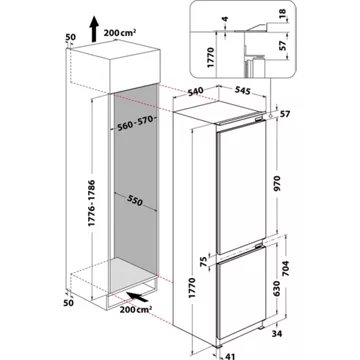 • Dimensions d’encastrement l x h x p : 56 x 177.6 x 56 cm