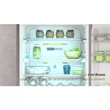 - Froid du réfrigérateur : le froid ventilé permet une répartition du froid de manière homogène et un rangement libre, sans contrainte, des aliments dans le réfrigérateur
