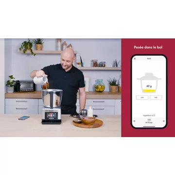 La connectivité vous permet de peser vos ingrédients directement dans le bol grâce à la balance XL Connect qui se positionne sous le robot, vous pourrez envoyer les programmes de votre recette et de piloter