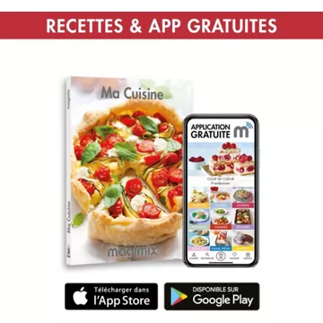 Recettes favorites, carnets thématiques, apports nutritionnels, filtres recettes (par ingrédient, objectif santé…), l’application Magimix ne vous quittera plus