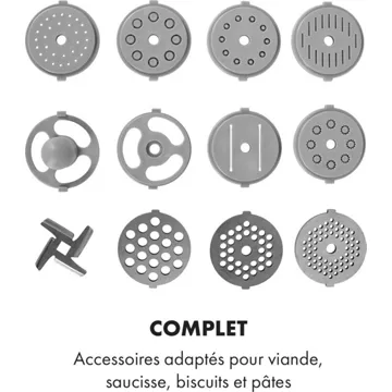 mixeurComplet: accessoires adaptés pour la viande, les saucisses et les pâtes