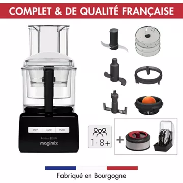 Entièrement fabriqué en France, ce robot multifonctions Magimix est équipé d’un moteur professionnel garanti 30 ans et ses pièces détachées sont également disponibles 30 ans. Ses accessoires conçus en acier inoxydable vous offrent une qualité de coupe parfaite.