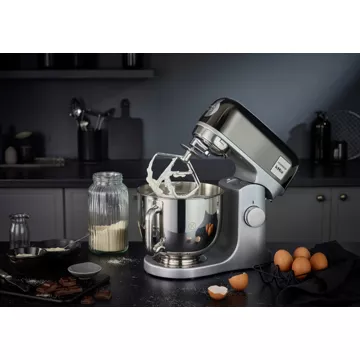 • Accessoires : batteur, couvercle anti-projections, crochet pétrisseur, fouet à fils, spatule