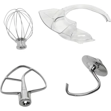 Le robot pâtissier Kitchenaid 5KSM185PSEMS ARTISAN gris étain est fourni avec un fouet à fils qui vous permet d’ajouter de l’air à vos préparations. Avec lui, vous concoctez des chantilly et des crèmes légères. Un crochet pétrisseur vous offre, quant à lui, de réaliser des pâtes à pain, à pizza ou à pâtes. Enfin, le batteur plat vous sert pour les préparations les plus épaisses.