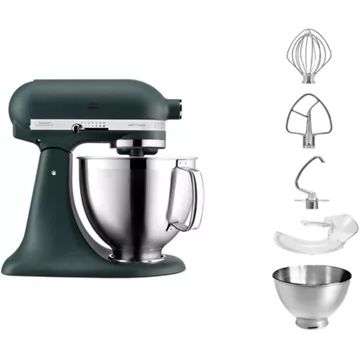 Robuste, durable et pratique, le robot pâtissier Kitchenaid 5KSM185PSEPP Artisan vert sapin est un véritable allié en cuisine, et ce, pour de longues années. Fourni avec 2 bols en inox, un batteur plat, un fouet à fils et un crochet pétrisseur, il vous aide à réaliser de nombreuses préparations.