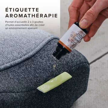 Le Couvre siège HOMEDICS TRD-3000 dispose d’une étiquette aromathérapie, qui vous permet de déposer quelques gouttes d’huile essentielle et de profiter de tous les bienfaits de ces huiles naturelles. Sans tâche, sans mélange d’odeurs et sans danger, vous profitez d’un massage sensoriel complet.