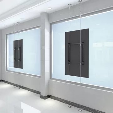 Le support filaire KIMEX 032-2006 est une solution professionnelle de montage d’affichage idéale pour les vitrines de magasins. Ce support repose sur un mécanisme de fixation du sol au plafond sur câbles pour écran et moniteur de 42″ à 75″ répondant au standard VESA (100x100mm min, 400x600mm max), jusqu’à 35 Kg.