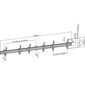 Le support KIMEX 031-3300K est livré avec tous les accessoires de montage pour s’adapter parfaitement à votre besoin: 3 rails de montage mural 150cm, 3 lots de 2 barres VESA inclinables 400mm, 3 connecteurs muraux pour rail de montage.
