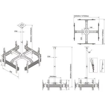 Le support de plafond KIMEX 014-6004 est conçu pour installer quatre écrans ou moniteurs de 32 à 65 pouces répondant au standard VESA (100x100mm min, 600x400mm max) jusqu’à 30 kg. Ce support professionnel multi-écrans intègre un mât réglable en hauteur (860 mm min – 3255 mm max) qui peut être installé sur un plafond plat ou incliné, et des bras télescopiques sur lesquels sont montés en carré quatre écrans pour fournir une solution d’affichage plafond multi-écrans. Très fonctionnels, les bras horizontaux sont réglables en profondeur pour une installation facile et un réglage précis des écrans. Avec une rotation à 360° et une inclinaison ajustable vers le haut et vers le bas (+6°/ -15°), ce support vous apporte le meilleur angle de vision en fonction de votre besoin. Conçu dans une optique d’esthétisme pour être installé en magasin et dans tout lieu recevant du public, ce support intègre enfin un système efficace pour la gestion des câbles qui garantit un rendu parfait.