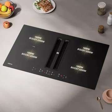 La plaque à induction aspirante CIARRA CD834BBFBEH est une solution de cuisine innovante. Elle combine une plaque de cuisson de 83 cm à quatre foyers, dont une zone flexible, avec une hotte intégrée offrant un débit maximal de 484 m³/h. Ce design 2-en-1 promet une cuisson efficace et élégante.