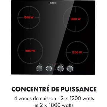 Quatrezones de cuisson avec 9 niveaux d’intensité et une puissance totale de