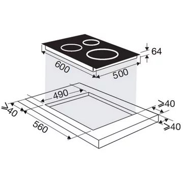 Les dimensions de la table de cuisson à induction SAUTER SPI1638SX sont standardisées : 60 x 6 x 51,5 cm (largeur x hauteur x profondeur), pour un encastrement standard à 56 cm de largeur.