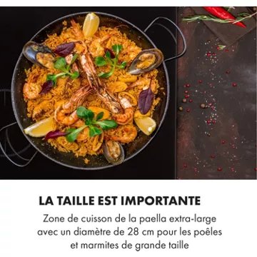cuisson de 2 300, 2 000 et 1 500 watts. La zone de paella extra large de 28 cm de