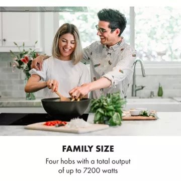 Taille familiale: 4 plaques de cuisson avec une puissance totale de 7200