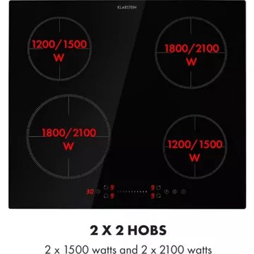 • Puissance totale des zones de cuisson: 7200 W (2 x 1800 W et 2 x 2100W)