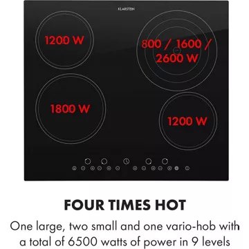 puissance totale de 6500 WDeux plaques 1200 W, une plaque 1800 W ainsi qu’une plaque