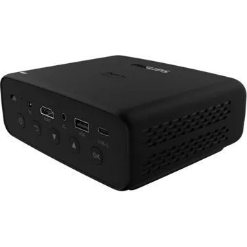 • Technologie : DLP, l’image est créée en projetant successivement et rapidement les couleurs d’une roue chromatique ce qui permet d’obtenir une image nette, des couleurs naturelles et des noirs profonds