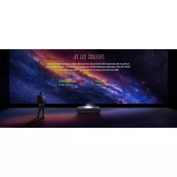 - Type de lampe : Laser, permet d’afficher une luminosité très élevée pendant une longue durée sans diminuer sa performance ni impacter sa durée de vie