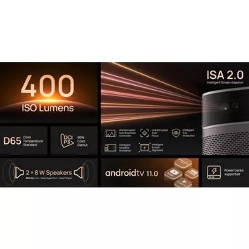 • Système d’exploitation : un vidéoprojecteur Android TV a la capacité de se connecter au réseau internet et permet ainsi de faire des recherches, regarder des films et séries en streaming ou encore jouer à des jeux vidéo en ligne